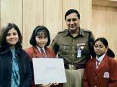 | Police chief Gautam Mohan Chakrabarti with students and principal (far left) of Shaw Public School |