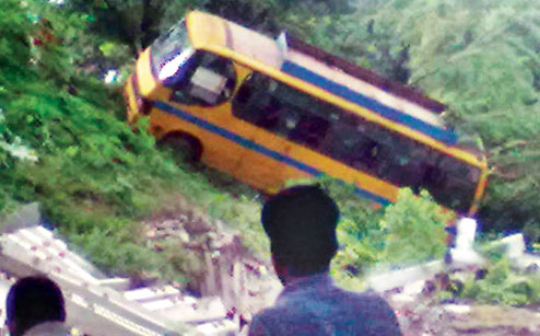 Some senior students jumped out and started to push the bus with local residents. “The engine came alive but after the students boarded the bus, it stopped again. Soon after, the bus started rolling down the northern slope. We all got terribly frightened and started shouting for help,” said another student.