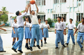 | Hidden talent: Students play basketball in a city school. A Telegraph picture |