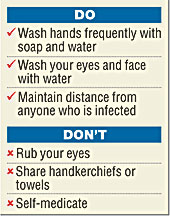 According to doctors, avoid rubbing your eyes often, steer clear of anyone with bloodshot eyes and hope for the best.