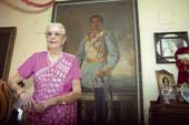 | Gina Narayan in front of a portrait of her late husband, Maharaja Jagaddipendra Narayan, at the Dev Burman residence. Picture by Bishwarup Dutta |