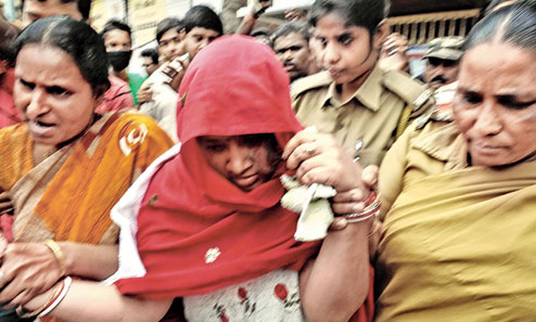 | Juthika being taken to the Englishbazar police station on Sunday. Picture by Surajit Roy |