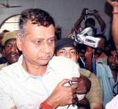 Dressed in blue striped shirt, Modi cut a forlorn figure in the courtroom lock-up as the acting chief judicial magistrate of Barasat, S.K. Saha, rejected his bail application. Minutes after the hearing began at 12.30pm, he complained of uneasiness and slumped to the ground.