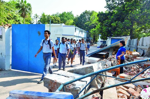 Barrackpore: Modern English Academy, the school whose entrance was bulldozed by the army on Tuesday, had a police team standing guard outside its rubble-lined driveway when a batch of ICSE examinees walked in the next morning.