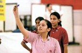 | Bull’s Eye: This game is all about hitting the target, with concentration, patience and plenty of practise. The 4th West Bengal Inter-school Darts Tournament 2004 was held at Assembly of God Church, Park Street, from August 18 to 20. Eleven teams of four each participated, with St Thomas Boys, Howrah, crowned the winner by actress June on Friday. Assembly of God Church (boys) was runners-up. Picture by Sanjoy Chattopadhyaya |