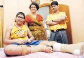 In 2009, Akash was operated on for a fractured patella. A few months later he began to suffer from an acute backache. In great pain, he took the Class VI final exam from bed, and scored 87 per cent. In March this year he was treated for multiple fractures in the spine and was advised bed rest. But Akash is not ready to miss his first terminal examination of Class VII. “I cannot let the pain get the better of me,” he smiles. Akash’s courage stems from his parents. “At times people would point at him and his limp, but I wanted him to face that,” says father Ashis.