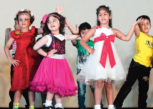 | Tiny tots of South City International School (picture above by Arnab Mondal) and Delhi Public School, New Town, perform for their grandparents. The children at South City recited poems, sang and danced before their grandparents took the stage. Pablo Bhakto of Prep C had a wonderful time with his grandmother. “I am loving it,” he declared. Granny Chunchun Roy couldn’t stop smiling. At DPS, students aged three to seven presented a welcome dance and a dance drama. |
