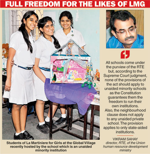 The apex court said no. Vikram Sahay, director, RTE, of the Union human resource development ministry, reaffirmed this on Monday.