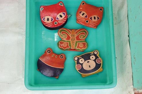At another stall, Babita Banerjee sells leather coin bags shaped like cats, frogs, butterflies and pandas.