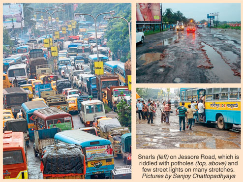 The real estate hoarding near the BT College crossing looks absurdly misplaced for motorists trying to start-stop-yawn their way through unending snarls on the cratered Jessore Road.