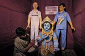 Kumartuli gets into World Cup mode, with clay figures of Team India coach Greg Chappell and star player Sourav Ganguly flanking the artisans’ mascot Narugopal on Holi day. Picture by Bishwarup Dutta