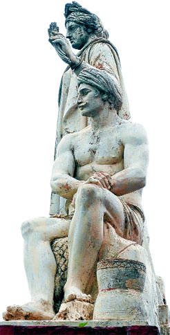 The facade of Writers’ Buildings is richly embellished with floral carvings and foliage. Innumerable urns adorned with the heads of women are silhouetted against the skyline. The couchant lion lying down but with its head raised cannot be missed. They remind one of these symbols of imperialism in the Victoria Memorial Hall, Raj Bhavan and Prinsep’s Ghat, which had been shifted to Fort William by General Jacob for safe-keeping.