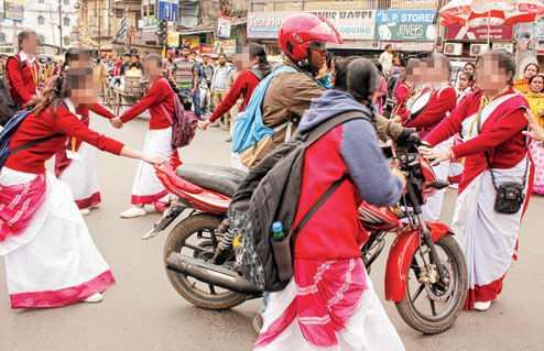 On Hashmi Chowk, which is a four-point crossing in Siliguri, girls of a school on Wednesday tried to