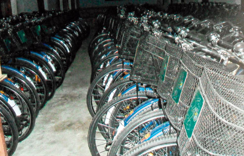Classes have been affected at the three government-aided schools in Tehatta as three rooms in each of the institutions are being used to assemble bicycles and store them for distribution among students after Durga Puja as part of the scheme.
