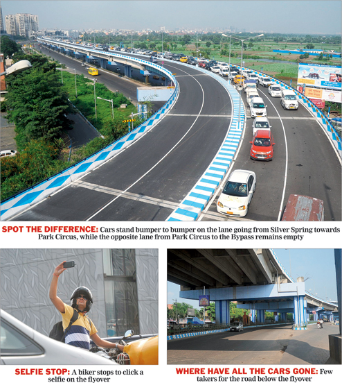 The Parama-Park Circus flyover was thrown open to traffic around noon on Friday. For the next three hours, Metro sailed and stuttered between the Park Circus seven-point crossing and Silver Spring on the EM Bypass, to find out how long it takes to travel both on the flyover and the road below