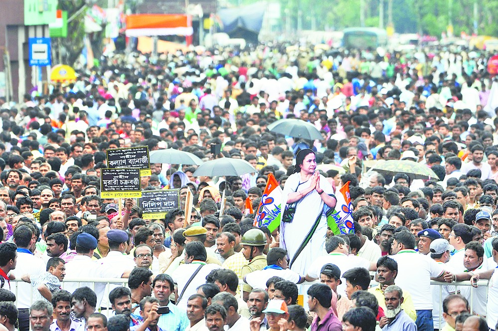 Everyone kept their fingers crossed about what Mamata might say about syndicates. One of the men in reflective sunglasses said: " Ki je hobey (What will happen)?"
