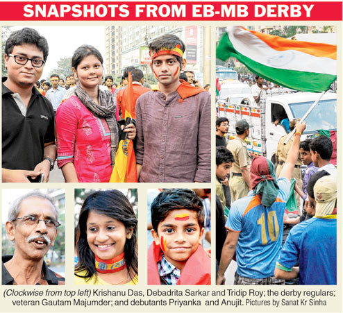 Metro found football derby diehards and debuting devotees among the 80,000-plus fans during Sunday’s East Bengal-Mohun Bagan match at the Salt Lake stadium. “The tie lasted 90 minutes but the memories of another EB-MB classic will stay forever,” said an EB fan after dialling his fish supplier to keep a kilo or two of ilish for dinner.