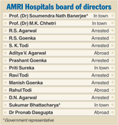 The other members on the board are Rahul Todi, Aditya Agarwal, Priti Sureka, Dr M.K. Chhetri, Dr Pronab Dasgupta and two government representatives — Dr Soumendra Nath Banerjee and Sukumar Bhattacharya (see chart). “We are looking into the legal provisions before taking the next step with regard to the other directors,” said a senior police officer.
