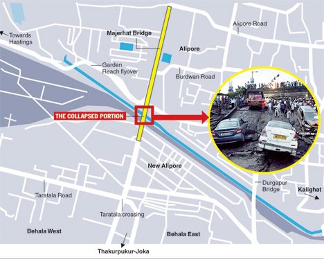Detour via Taratala Road, Central Garden Reach Road, Garden Reach flyover and Karl Marx Sarani to reach Hastings crossing. Those heading to Kalighat or Tollygunge will have to take New Alipore Road and Durgapur Bridge