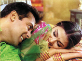 | SPOT THE DIFFERENCE: (From top) Salman Khan and Aishwarya Rai in a moment from Hum Dil De Chuke Sanam;Salman with Sneha Ullal in Lucky: No Time For Love |