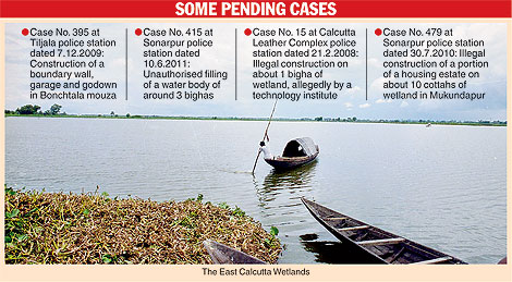 The East Calcutta Wetlands Management Authority has accused police of sitting on as many as 200 complaints about filling up of ponds or building structures in the fragile ecological zone in violation of a high court order and a state act.