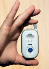 | The 911 Guardian Phone unveiled at 2005 International Consumer Electronics Show has an 800-ft range from the base station and no monitoring fee, allowing the user to access the 911 (emergency) operator directly. Available in the US in April 2005 for $139. (Reuters) |