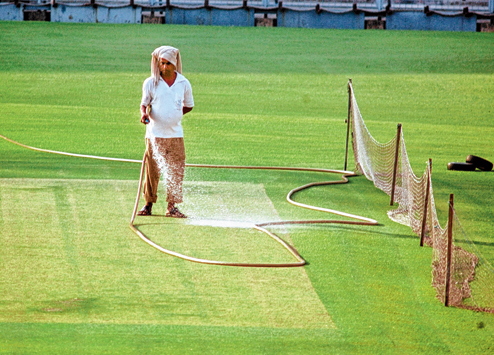 A batsman-friendly wicket, according to former India opener Devang Gandhi, is hard and has a sprinkling of dry grass that holds the soil together to ensure uniform pace and bounce. Water holds the key in maintaining that tinge of green on the pitch.