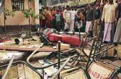 Half an hour later, three other explosions were heard in the distance. The Trinamul and the CPM blamed each other for the violence.