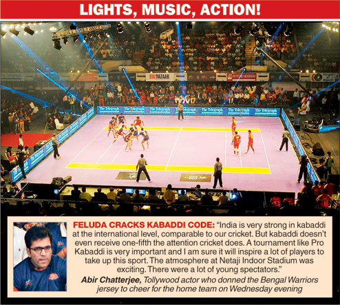 The Bengal Warriors, partnered by The Telegraph, was in the ring with the Bengaluru Bulls in their second match of the Pro Kabaddi League, where eight franchises representing different cities are battling it out for the prize.