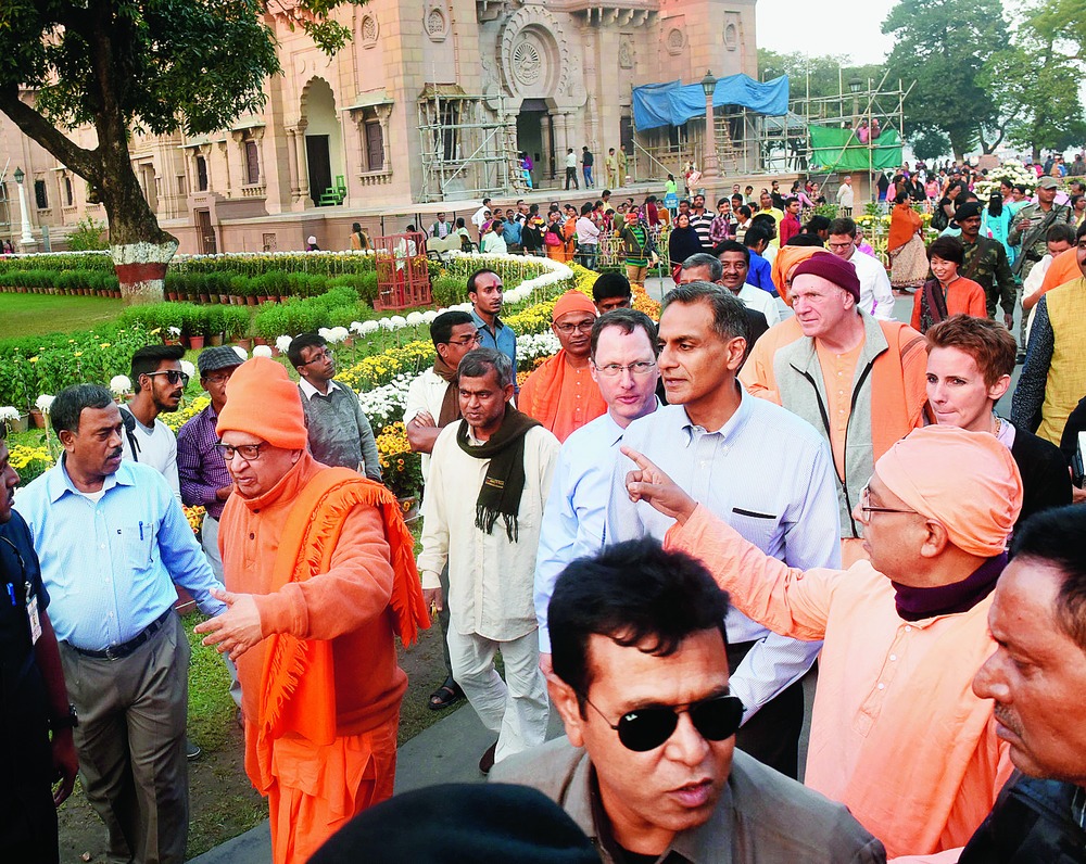 The US ambassador to India, Richard Verma, and his wife Pinky Verma at Belur Math on Tuesday. He was accompanied by Craig L Hall, the US consul-general in Calcutta. The envoy visited the Ramakrishna temple and the museum at the Math and met with monks. Picture by Sanjoy Chattopadhyaya