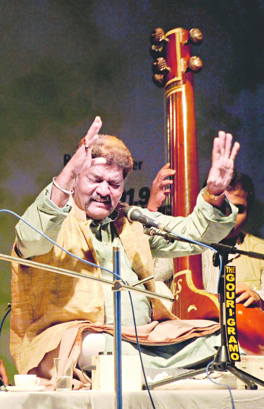 Shaukat Hussain Khan performs raga Jaijaiwanti at Calcutta Club Classical Music Conference 2015, presented by Centuryply, in association with The Telegraph, on Sunday. After an hour-and-a-half of mesmerising vocals, the stage was left to sitar maestro Shahid Parvez to play compositions in raga Jhinjhoti followed by a dhun in raga Mishra Khamaj. The two-day music festival began on Saturday with performances by Kuchipudi exponents Yamini and Bhavana Reddy and vocalist Manjiri Asnare-Kelkar. Picture by Pabitra Das