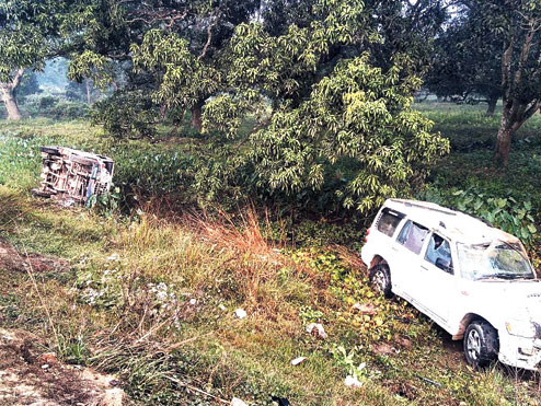 Sources said a temporary check-point had been set at Chowrangi More, around 100 km from Raiganj, for vehicle checks and a truck tried to dodge it around 5am.
