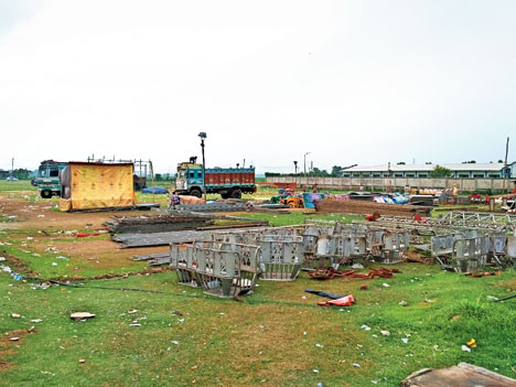 Pandals erected on the ground, belonging to the subdivision sports authority, have left big craters and the debris is yet to be removed, said the complaint lodged with the subdivisional officer.