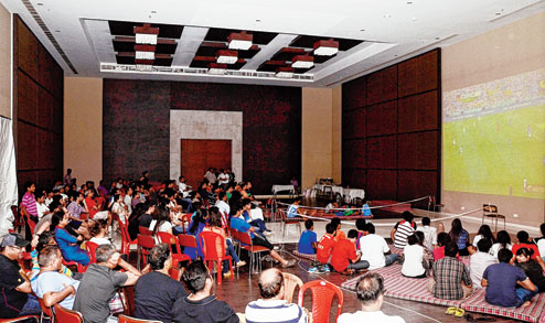 | Residents of South City and their guests watch the World Cup final on a giant screen in the auditorium of the apartment complex. (Bhubaneswarananda Halder) |