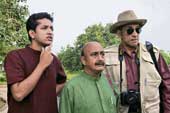 Sandip is also radically conservative about another Feluda trait. He does not give him a mobile phone. Neither do Topshe or Lalmohanbabu get mobiles, for the director feels that would really crack Feluda’s image up. A threat on the mobile phone instead of on the landline would demolish the plot. “We thought that we didn’t need to explain why Feluda is still without a mobile; his audience would understand. But we will have to give him that if it’s necessary in the future,” Sandip concedes. Though he had to do away with the “trunk call”, for many children today would not even have heard of it. He is shooting another Feluda film, Tintoretor Jishu.