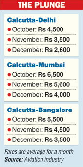 A surfeit of new flights from Calcutta is dragging down domestic airfares from the city during winter, prompting industry watchers to predict a record plunge in December when the demand peaks.
