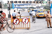 | The closure of this slip-road gate triggered prolonged snarls on VIP Road and Jessore Road. (Amit Datta) |