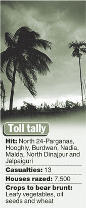Chief minister Buddhadeb Bhattacharjee said in the evening: ?Four districts were affected the most, including Nadia and Burdwan. We have received reports of deaths and dwelling units being destroyed.?