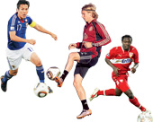 | (From top) Makoto Hasebe of Japan, Christian Poulsen of Denmark and Arthur Boka of Ivory Coast in action |