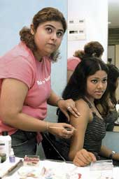 | Lavina Jagtiani at work. Picture by Rashbehari DasDeepak Roy at the tabla. Picture by Sanat Kumar Sinha |