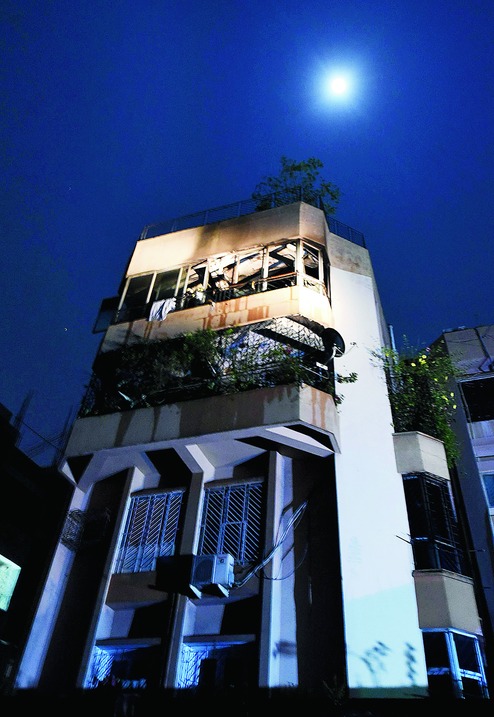"The balcony is gutted. The rooms were unscathed barring some curtains and clothes. Dark patches have formed on the walls because of the smoke," a relative of the Poddars said.