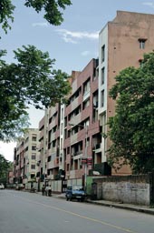 | The CMC housing estate for NRIs, a block of which is in danger of collapsing as it stands on a crumbling sewer. Picture by Sanat Kumar Sinha |