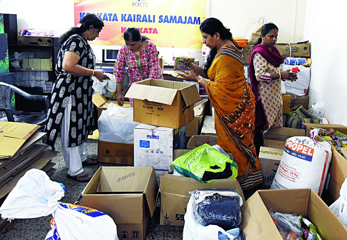 "We have received a lot of materials. We have to check with Calcutta police what they will take with them to Kerala. The rest we plan to send through other means. Our members will also talk to the railways to find out whether the relief items can be sent for free," said T.K. Gopalan, a member of the Samajam.