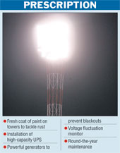 “The security and maintenance of the towers are as important as the power distribution system across the stadium, including the floodlights,” said another member of the panel, made up of representatives of CESC, Calcutta police, the Cricket Association of Bengal and the public works department.