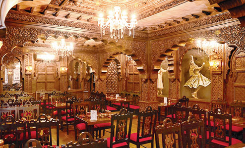 restaurant in the township has a pool table for diners. Welcoming foodies into the outlet are guards dressed in Mughal attire, armed with spears.