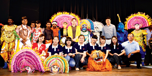 | Students and teachers of Yunnan Nationalities High School in Kunming pose with Chhau dancers from Purulia after a lecture demonstration during their visit to GD Birla Centre for Education. Picture by B. Halder |