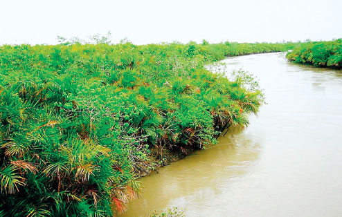 | The Sunderbans mangroves, which are facing danger from increased salinity in the rivers. (Below) Gangetic dolphins and hilsas are under threat, too. | |