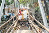 Built in 1990, the 68-foot-long footbridge connects Kudghat with Karunamoyee and is used by thousands as a short cut between the two localities.