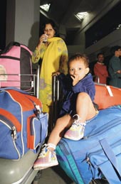 | Evacuees arrive at Calcutta airport from Port Blair on Sunday. Picture by Aranya Sen |