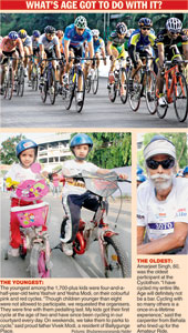 Some like Shinjini Banik, 15, had been partying till late on Saturday but managed to wake up on time to push the pedal at Calcutta’s first such cycling event. “I had read about the Cyclothon in t2 and I could not afford to miss out on this experience of a lifetime,” said the student of St. Francis Xavier School, who participated in the NVD Solar Green Ride (14-plus).
